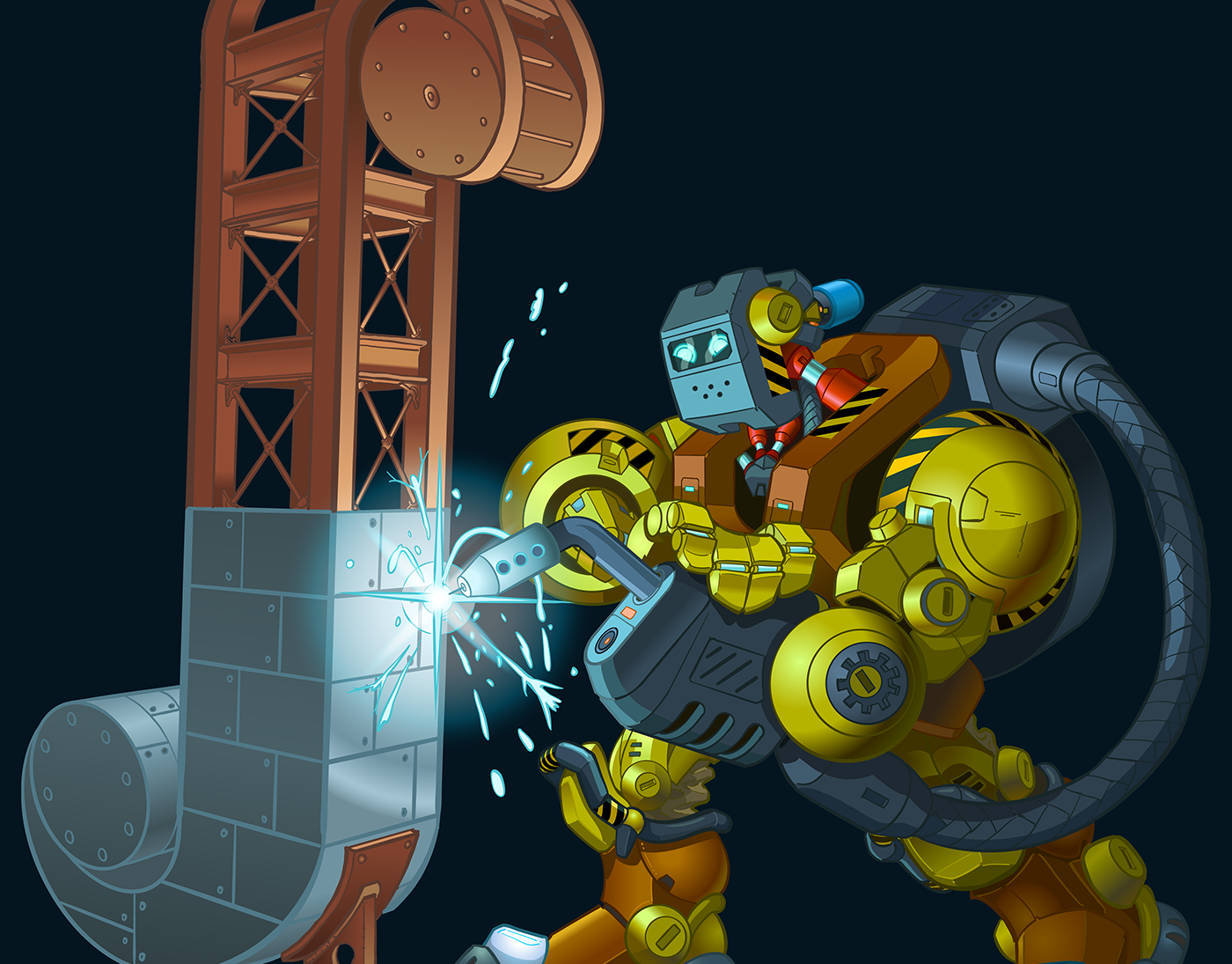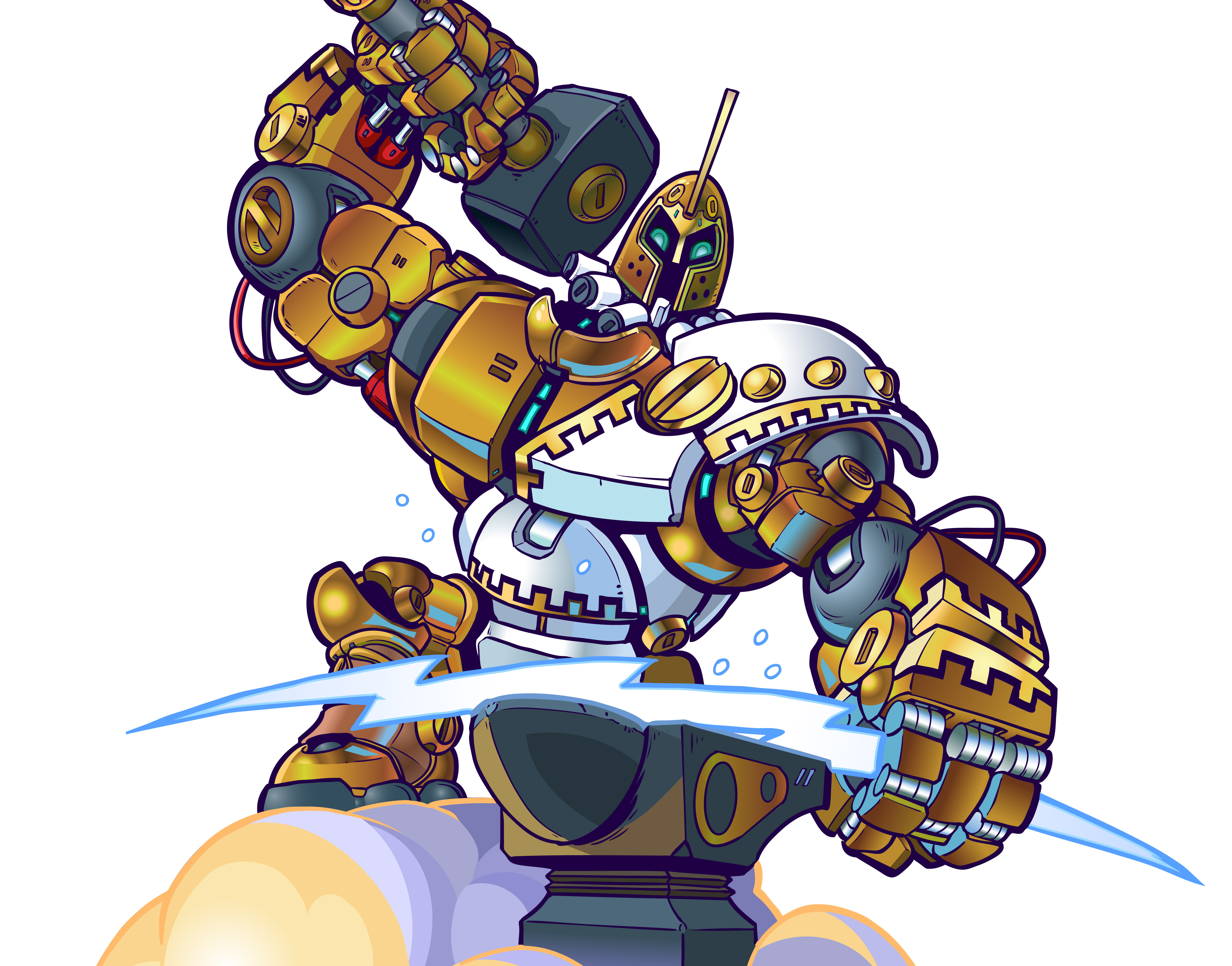 Greek God Robot Forging Lighting Bolt on a Cloud
